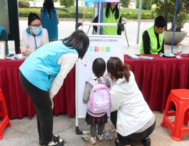 “心理健康微笑角”提供免费情绪自测与疏导服务,专业社工耐心倾听市民烦恼,为50余名市民舒缓压力,传递积极健康的生活理念。
