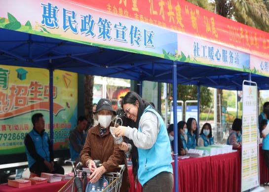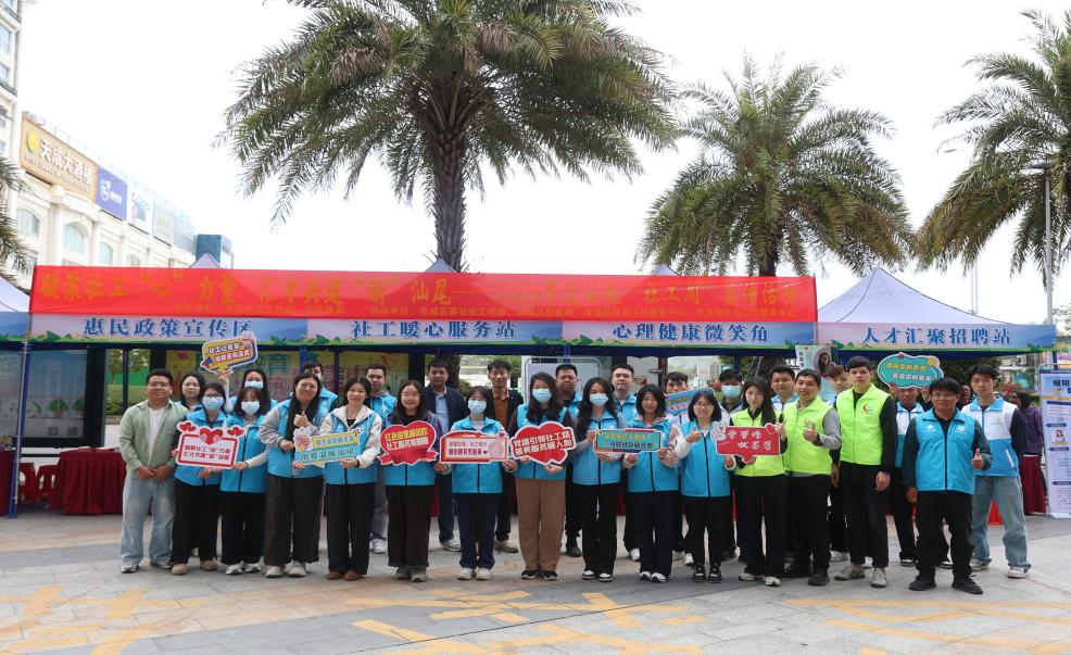春和景明,暖意融融。3月17日,恰逢第20个国际社工日,2026年度汕尾“社工周”主题集市活动在市城区明珠广场温情启幕。本次活动以“凝聚社工‘心’力量 汇才共建‘新’汕尾”为主题,由中共汕尾市委社会工作部、汕尾市民政局联合主办,市城区委社会工作部、市城区民政局及市暖阳、市启程两家社工机构协办,通过“成效展示+互动服务”的创新形式,让市民群众沉浸式感受社会工作的专业温度与民生力量,在春日里奏响了善美汕尾的暖心乐章。