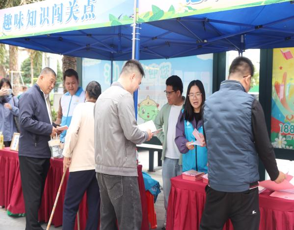 “趣味知识闯关点”围绕社工知识、反诈防骗、文明创建等内容设计题库,100余名市民踊跃参与,在欢声笑语中普及常识,不少小朋友拉着家长一起答题,收获满满。